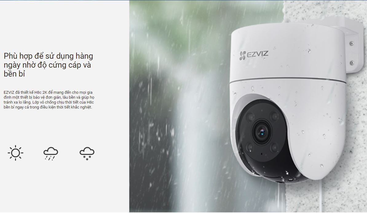 Ezviz H8C 3MP 2K là dòng camera wifi ngoài trời cao cấp, sở hữu độ phân giải 2K sắc nét, khả năng xoay 360° và hàng loạt tính năng thông minh như phát hiện người, theo dõi chuyển động, đàm thoại hai chiều và quan sát ban đêm có màu. Đây là lựa chọn hoàn hảo cho gia đình, cửa hàng, văn phòng hay kho xưởng cần một giải pháp an ninh toàn diện, hoạt động bền bỉ trong mọi điều kiện thời tiết.