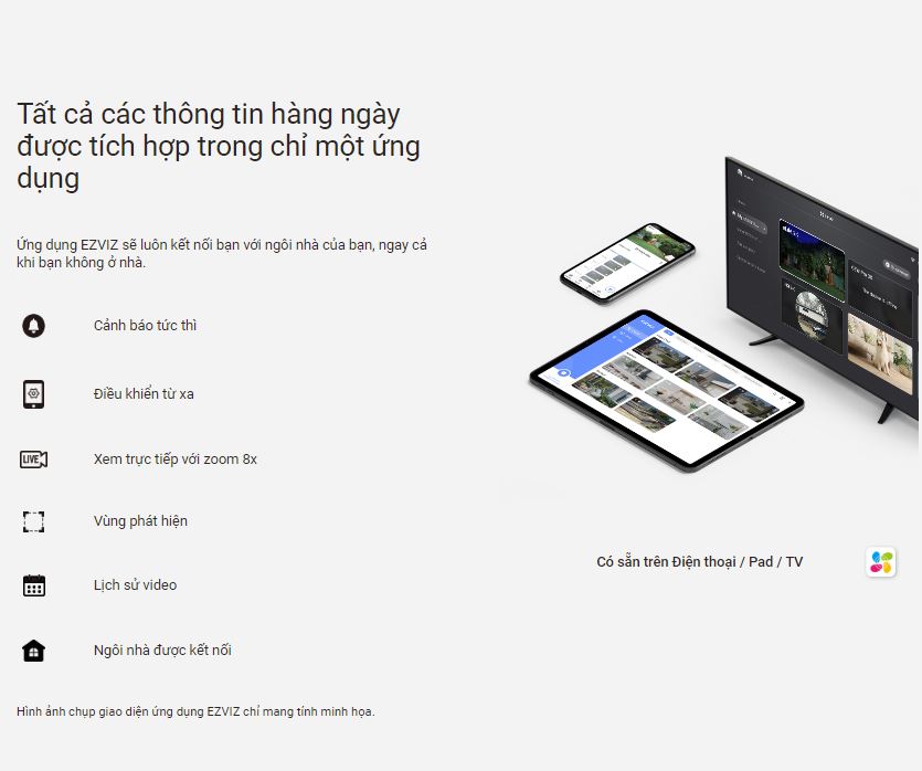 | Hỗ trợ app | Ezviz (Android/iOS) |