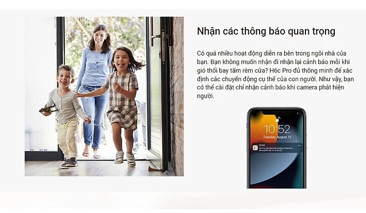 Nhờ công nghệ AI, EZVIZ H6C Pro 2K+ nhận diện người chính xác, giảm thiểu cảnh báo giả do vật nuôi, cây rung hay ánh sáng thay đổi.