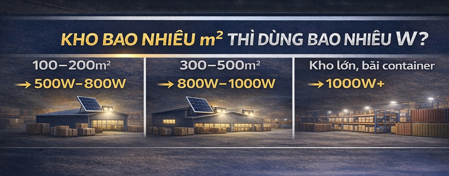 1️⃣ Kho Bao Nhiêu m² Thì Dùng Bao Nhiêu W?