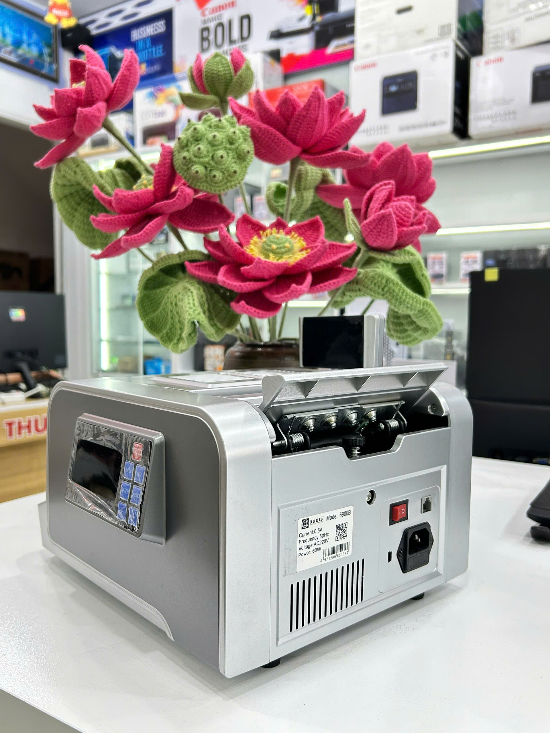 Với tốc độ 1.000 tờ/phút, máy OUDIS 6900B giúp các cửa hàng, quầy thu ngân ở Phú Quốc tiết kiệm thời gian và giảm sai sót khi kiểm tiền mặt.