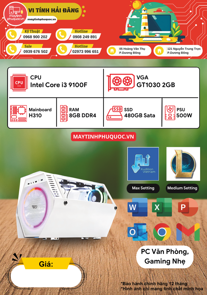 💻 PC Văn Phòng – Gaming Nhẹ Intel i3 9100F | Hiệu Năng Ổn Định – Giá Tốt Tại Máy Tính Hải Đăng Phú Quốc