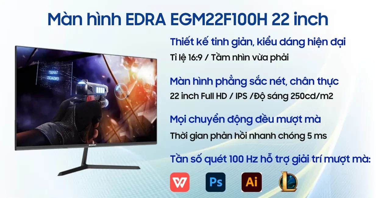 Màn Hình E-DRA EGM22F100 (22 inch - IPS - FHD - 100Hz - 5ms) – Hình Ảnh Sống Động, Trải Nghiệm Mượt Mà
