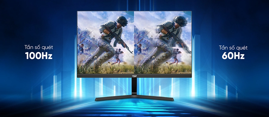 Tần số quét 100Hz giúp cải thiện rõ rệt chất lượng hình ảnh khi chơi game hoặc xem video tốc độ cao. Ngoài ra, nó còn giảm tình trạng mỏi mắt khi làm việc dài giờ, nâng cao hiệu suất cho cả nhu cầu học tập và làm việc chuyên nghiệp.