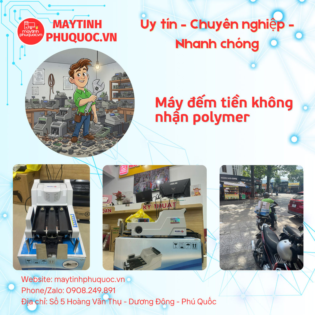 Vi Tính Hải Đăng cung cấp dịch vụ sửa máy đếm tiền không nhận polymer tận nơi tại Phú Quốc, hỗ trợ giao – nhận máy, xử lý nhanh, chính xác, không cần mang máy đi khi lỗi nhẹ.